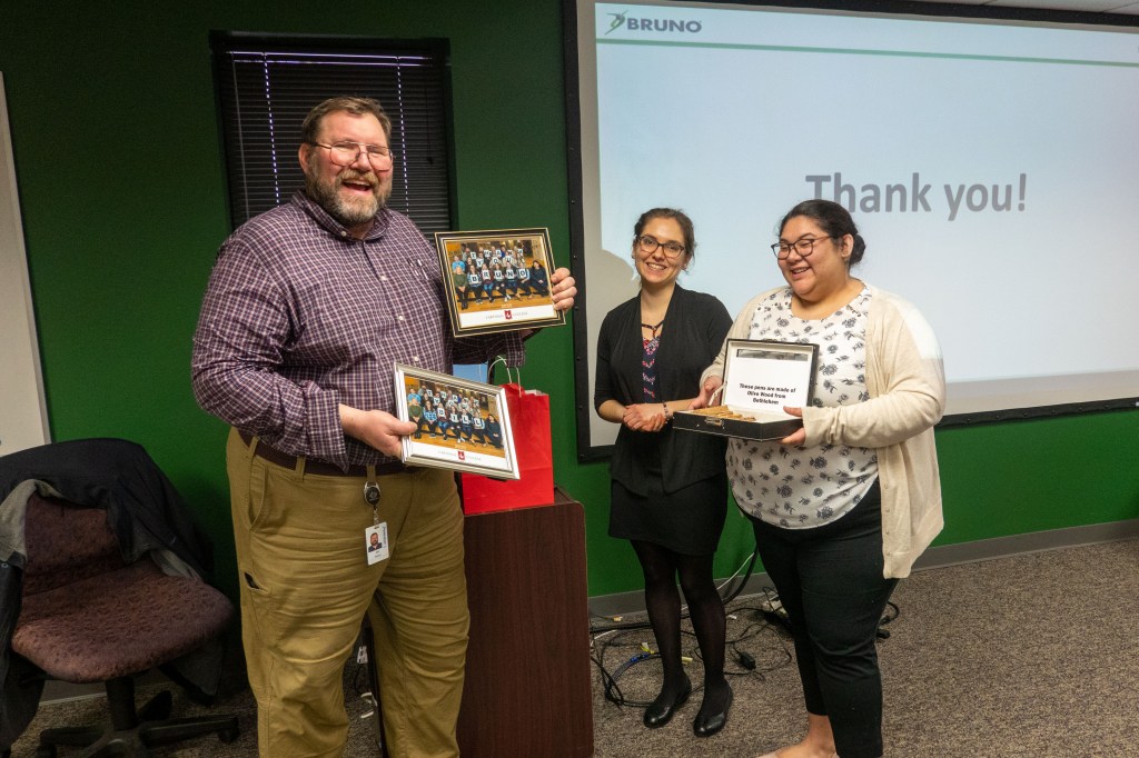 My roommate Leslye and I presented Bill with gifts for taking time out of his day to speak to us. I had a great experience at Bruno and I love how they positively impact the lives of their consumers in such a significant way.